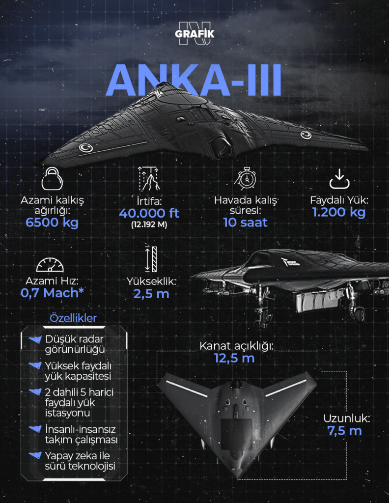 TUSAŞ da yeni nesil insansız savaş uçakları geliştirme vizyonuyla dikkat çekiyor. 2023 sonunda ilk uçuşunu gerçekleştiren ANKA-3 insansız jet uçağı, Türkiye’nin ilk dikey kuyruksuz, turbofan motorlu insansız hava aracı olarak önemli bir aşamayı temsil ediyor. Stealth (radarda düşük görünürlük) özellikleriyle tasarlanan bu platform, gövde içinde silah taşıma kapasitesine sahip ve taarruz, keşif-gözetleme, hava-hava muharebesi gibi çok rollü görevlerde kullanılmak üzere geliştiriliyor. Dönemin TUSAŞ Genel Müdürü Temel Kotil, ANKA-3’ün başarıyla havalanmasının ardından “Artık gökyüzünde düşmanın göremediği ama düşmanını gören bir İHA’mız var” diyerek Türkiye’nin bu alandaki iddiasını dile getirmişti.