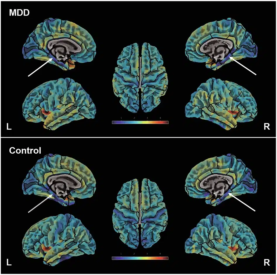 Yeni bir çalışmada, Aachen Üniversitesi ve Forschungszentrum Jülich GmbH’dan araştırmacılar, MTL’nin önemli bir parçası olan parahipokampal korteksin (PHC) yapısı ile MDB arasındaki ilişkiyi inceledi. Translational Psychiatry dergisinde yayımlanan makaleye göre, parahipokampal korteksin kalınlığı hem MDB hem de nörotizm (kaygı, suçluluk, öfke gibi olumsuz duygulara yatkınlıkla tanımlanan bir kişilik özelliği) için bir gösterge olabilir.
