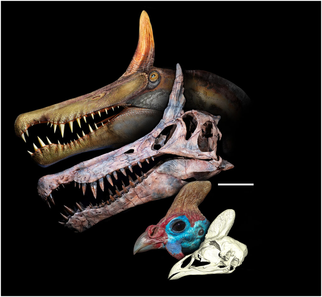 Nijer’de kazı çalışması yürüten bilim insanları 95 milyon yıl öncesine ait olduğunu düşündükleri bir dinozor fosili buldu. Fosilin yeni bir türe ait olduğu belirlenirken, “Cehennem balıkçılı” olarak da tanımlandı ve bilimsel adı ise “Spinosaurus mirabilis” oldu. Yırtıcının en dikkat çekici özelliği ise; muhtemelen yaşarken parlak renkli olan, devasa, pala (eğri kılıç) benzeri, boynuz gibi çıkık bir “crest” (ibik).